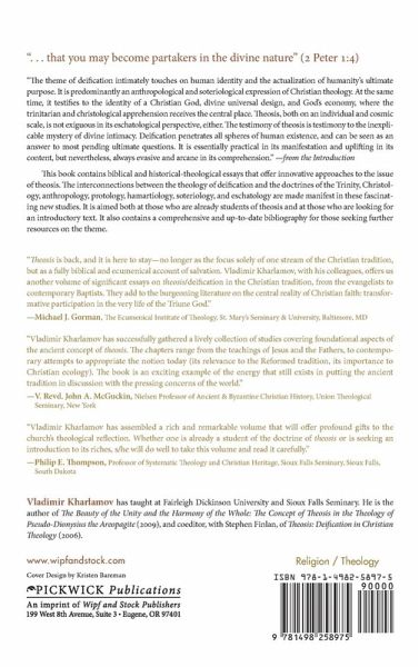 "". . . that you may become partakers in the divine nature"" 2 Peter 1:4 ""The theme of deification intimately touches on human identity and the actualization of humanity's ultimate purpose. It is predominantly an anthropological and soteriological expression of Christian theology. At the same time, it testifies to the identity of a Christian God, divine universal design, and God's economy, where the trinitarian and christological apprehension receives the central place. Theosis, both on an individual and cosmic scale, is not exiguous in its eschatological perspective, either. The testimony of theosis is testimony to the inexplicable mystery of divine intimacy. Deification penetrates all spheres of human existence, and can be seen as an answer to most pending ultimate questions. It is essentially practical in its manifestation and uplifting in its content, but nevertheless, always evasive and arcane in its comprehension."" From the Introduction This book contains biblical and historical-theological essays that offer innovative approaches to the issue of theosis. The interconnections between the theology of deification and the doctrines of the Trinity, Christology, anthropology, protology, hamartiology, soteriology, and eschatology are made manifest in these fascinating new studies. It is aimed both at those who are already students of theosis and at those who are looking for an introductory text. It also contains a comprehensive and up-to-date bibliography for those seeking further resources on the theme.