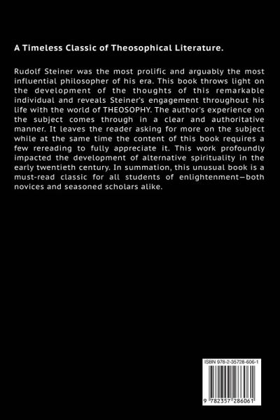 A Timeless Classic of Theosophical literature. Rudolf Steiner was the most prolific and arguably the most influential philosopher of his era. This book throws light on the development of the thoughts of this remarkable individual and reveals Steiner's engagement throughout his life with the world of theosophy. The author's experience on the subject comes through in a clear and authoritative manner. It leaves the reader asking for more on the subject while at the same time the content of this book requires a few rereading to fully appreciate it. This work profoundly impacted the development of alternative spirituality in the early twentieth century. In summation, this unusual book is a must-read classic for all students of enlightenment-both novices and seasoned scholars alike.
