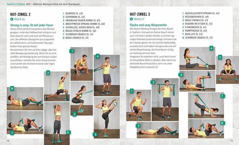 Es gibt keine Ausrede mehr! Schon mit dem Vorgängertitel "Das 8-Minuten-Muskel-Workout" sparen bereits viele motivierte Leser Zeit beim Sport. Nun trifft das erfolgreiche Konzept auf das seit langem bewährte Theraband. Das erfolgreiche "Mini-Gerät" ist preiswert, einfach zu verstauen und fast überall einsetzbar - perfekt für den Alltag. Die Intensität des Trainings wird individuell durch die Spannung des Bands angepasst, weshalb sich das Workout für alle Fitnesslevels eignet und besonders gelenkschonend ist. Auf einen Theorieteil, der erklärt wie besonders effektiv trainiert werden kann, folgt die Praxis. In drei Stufen wird die Fitness aufgebaut und gesteigert. Stufe 1 schafft die Basis, Stufe 2 lässt an Problemzonen arbeiten und Stufe 3 sorgt schließlich für mehr Abwechslung. Mit einem Selbsttest lassen sich das anfängliche Fitness-Niveau und der individuelle Fortschritt überprüfen. Inklusive DVD mit allen Übungen und den sechs effektivsten Workout-Zirkeln zum Mitturnen!