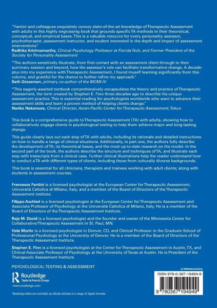This book is a comprehensive guide to Therapeutic Assessment (TA) with adults, showing how to collaboratively engage clients in psychological testing to help them achieve major and long-lasting change.