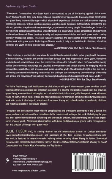 Therapeutic Conversations with Queer Youth is for practitioners who seek culturally responsive, socially-just ways of engaging queer youth in conversations that evoke imagination, provoke possibility, and honor the courageous resistance and arresting inventiveness of their young clients. The first therapy book that focuses on work with youth who construct queer identities (as differentiated from essentialized gay or lesbian identities), it’s also the first to draw on queer theory and constructionist philosophy to inform practice with queer youth. Case vignettes and reflective exercises suitable for classroom use are provided through the commentary of five queer youth who served as cultural consultants to the research and writing of the book.
