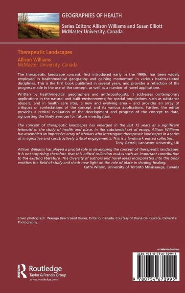 The therapeutic landscape concept, first introduced early in the 1990s, has been widely employed in health/medical geography and gaining momentum in various health-related disciplines. This is the first book published in several years, and provides an introduction to the concept and its applications. Written by health/medical geographers and anthropologists, it addresses contemporary applications in the natural and built environments; for special populations, such as substance abusers; and in health care sites, a new and evolving area - and provides an array of critiques or contestations of the concept and its various applications. The conclusion of the work provides a critical evaluation of the development and progress of the concept to date, signposting the likely avenues for future investigation.