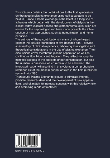 This volume contains papers and discussions of the Vlth Dialyse-Arzte Workshop, which was held in Bernried at Lake Starnberg near Munich the 5th and 6th of March 1980. Generous ly sponsored by Travenol, Munich, the Dialyse-Arzte meetings now have a tradition spanning 16 years. According to the con stitution of these meetings, the topics of earlier years had to cover dialysis and related fields. Thus the sponsor requested that this year also one lecture - incorporated here as part - should deal with the state of art of dialysis, thereby hopefully linking this Workshop to the previous meetings. Dialysis techniques of the 1960s, pioneered by many of attend ing speakers and panelists (see List of Contributors), have never come to a standstill. Indeed, vascular access and extra corporeal circulation have become routine for the nephrologist and have made possible the introductimn of new approaches, such as hemofiltration and hemoperfusion. Also today new membrane technologies provide us with a potentially even more effective therapeutic tool, namely plasma separation.