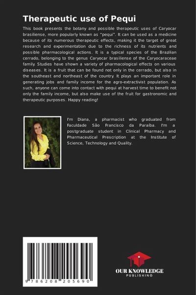 This book presents the botany and possible therapeutic uses of Caryocar brasiliense, more popularly known as "pequi". It can be used as a medicine because of its numerous therapeutic effects, making it the target of great research and experimentation due to the richness of its nutrients and possible pharmacological actions. It is a typical species of the Brazilian cerrado, belonging to the genus Caryocar brasiliense of the Caryocaraceae family. Studies have shown a variety of pharmacological effects on various diseases. It is a fruit that can be found not only in the cerrado, but also in the southeast and northeast of the country. It plays an important role in generating jobs and family income for the agro-extractivist population. As such, anyone can come into contact with pequi at harvest time to benefit not only the family income, but also make use of the fruit for gastronomic and therapeutic purposes. Happy reading!