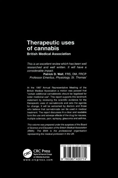 At the last Annual Representative Meeting of the British Medical Association a motion was passed that `certain additional cannabinoids should be legalized for wider medicinal use.'' This report supports this landmark statement by reviewing the scientific evidence for the therapeutic use of cannabinoids and sets the agenda for change. It will be wel