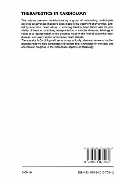 Therapy in cardiology has advanced enormously in recent years. This has resulted in the organization of many meetings and the publication of numerous books dedicated to examining the latest aspects of, for instance, pharmacolog ic, electrical and surgical treatment. However, only a few of these meetings and publications have attempted to present an overall review of all advances that have taken place in the field of therapy. In the last years the Spanish Society of Cardiology has shown a great interest in the continuous medical education in cardiology. The Society has organized various meetings and has published several books on the above-mentioned topics. Consequently, the Society has decided to publish this book, an update of the therapeutics in cardiology, of which a Spanish version is also available. World renowned experts and outstanding Spanish cardiologists were invited to review all aspects of therapy in cardiology. We would like to thank the Spanish Society of Cardiologyand the Catalan Cardiac Society for the generous assistance they have given us during all stages of book preparation. We also would like to express our appreciation to all the authors for their valuable contributions. Their combined efforts enable us to put this volume in the hands of the reader.