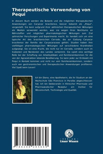 In diesem Buch werden die Botanik und die möglichen therapeutischen Anwendungen von Caryocar brasiliense, besser bekannt als "Pequi", vorgestellt. Sie kann aufgrund ihrer zahlreichen therapeutischen Wirkungen als Medizin verwendet werden, was sie wegen ihres Reichtums an Nährstoffen und möglichen pharmakologischen Wirkungen zum Ziel zahlreicher Forschungen und Experimente macht. Es handelt sich um eine typische Art des brasilianischen Cerrado, die zur Gattung Caryocar brasiliense der Familie der Caryocaraceae gehört. Studien haben ihre vielfältigen pharmakologischen Wirkungen auf verschiedene Krankheiten aufgezeigt. Sie ist eine Frucht, die nicht nur im Cerrado, sondern auch im Südosten und Nordosten des Landes vorkommt. Sie spielt eine wichtige Rolle bei der Schaffung von Arbeitsplätzen und Familieneinkommen für die von der Agroextraktion lebende Bevölkerung. So kann jeder zur Erntezeit mit Pequi in Kontakt kommen und nicht nur vom Familieneinkommen, sondern auch von gastronomischen und therapeutischen Anwendungen profitieren. Viel Spaß beim Lesen!