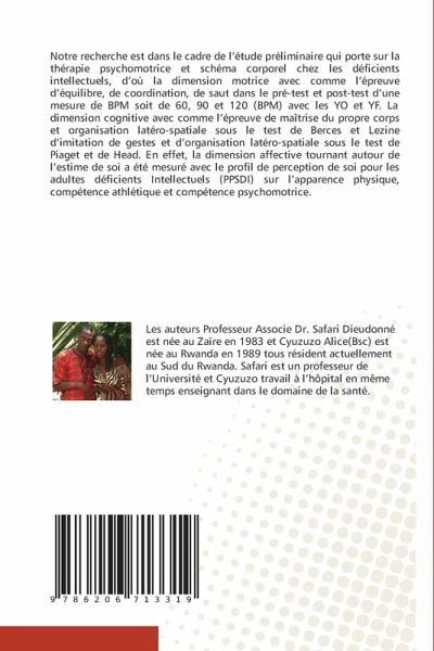 Notre recherche est dans le cadre de l'étude préliminaire qui porte sur la thérapie psychomotrice et schéma corporel chez les déficients intellectuels, d'où la dimension motrice avec comme l'épreuve d'équilibre, de coordination, de saut dans le pré-test et post-test d'une mesure de BPM soit de 60, 90 et 120 (BPM) avec les YO et YF. La dimension cognitive avec comme l'épreuve de maîtrise du propre corps et organisation latéro-spatiale sous le test de Berces et Lezine d'imitation de gestes et d'organisation latéro-spatiale sous le test de Piaget et de Head. En effet, la dimension affective tournant autour de l'estime de soi a été mesuré avec le profil de perception de soi pour les adultes déficients Intellectuels (PPSDI) sur l'apparence physique, compétence athlétique et compétence psychomotrice.