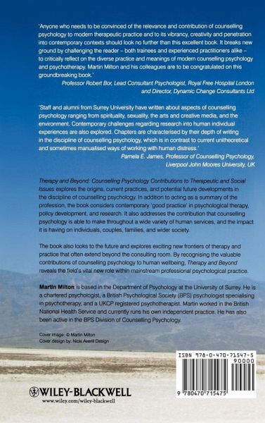 'Anyone who needs to be convinced of the relevance andcontribution of counselling psychology to modern therapeuticpractice and to its vibrancy, creativity and penetration intocontemporary contexts should look no further than this excellentbook. It breaks new ground by challenging the reader - bothtrainees and experienced practitioners alike - to criticallyreflect on the diverse practice and meanings of modern counsellingpsychology and psychotherapy. Martin Milton and his colleagues areto be congratulated on this groundbreakingbook.'--Professor Robert Bor, Lead ConsultantPsychologist, Royal Free Hospital London and Director, DynamicChange Consultants Ltd