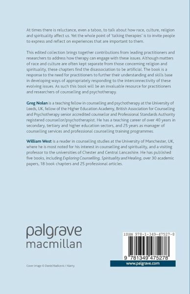 "In Therapy, Culture and Spirituality Nolan and West bring together writings exploring the interconnectivity of culture, religion, spirituality and 'race' in the context of therapeutic practice and research. The book is a welcome addition to the increasing scholarly interest in interrogating artificial dichotomies such as 'nature'/'culture' and 'objective' science and medicine/'subjective' counselling and therapy in understanding and working with human distress." (Dr. Jayasree Kalathil, The Journal of Critical Psychology, Counselling and Psychotherapy, Vol. 15, December, 2015)