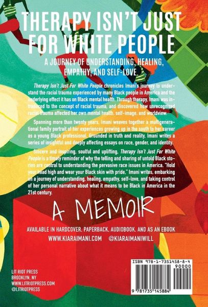 Kiara Imani is an attorney, writer, and co-host of Don Amiche vs. Everybody + Crysta & Kiara, a daytime talk show on Los Angeles radio station KBLA Talk 1580 AM. She is the co-founder of LikeU Cards, a getting to know you card game that facilitates human connection and meaningful conversation. Imani graduated from the University of Virginia School of Law and received her bachelor's degree from the University of Virginia with a major in political science. She has been featured in Forbes, Oprah Magazine, The Huffington Post, Blavity, and more. Therapy Isn't Just For White People is her debut memoir.