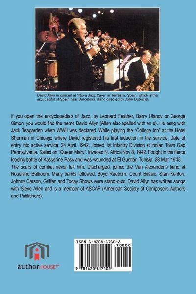 David Allyn (Albert DeLella) was raised in the depression years. His father was a French horn player. His mother studied voice as a child in Naples Italy. No doubt a musical family. He was forced to work at odd jobs to keep food on the table and to pay for clothes. Sang on all the radio stations Hartford Connecticut had to offer. WTHT, WTIC, WDRC and on a neighboring town of New Britain with the call letters of WNBC, until FCC changed them. Joined Jack Teagarden in 1940, was drafted into the 1st Army Division, fought in North Africa, fought in Kasserine Pass, the Army's first defeat. Received a Purple Heart at El Guetlar, Tunisia. Sent home, joined Van Alexander's band at Roseland Ballroom. Joined Boyd Raeburn and became an heroine addict for 9 years. Was arrested for forging scripts - served 23 months in Sing Sing and Dannamour prisons. Upon release made albums with Johnny Mandel, did Steve Allen shows with whom he wrote a few songs. Also became an addiction counselor on four programs, still continuing to sing and write music. His book covers most of the glory, and pains of hell, in his life.