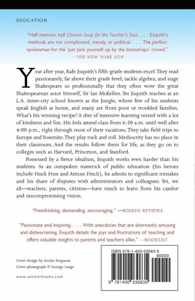 Year after year, Rafe Esquith's fifth-grade students excel. They read passionately, far above their grade level; tackle algebra; and stage Shakespeare so professionally that they often wow the great Shakespearen actor himself, Sir Ian McKellen. Yet Esquith teaches at an L.A. innercity school known as the Jungle, where few of his students speak English at home, and many are from poor or troubled families. What's his winning recipe? A diet of intensive learning mixed with a lot of kindness and fun. His kids attend class from 6:30 A.M. until well after 4:00 P.M., right through most of their vacations. They take field trips to Europe and Yosemite. They play rock and roll. Mediocrity has no place in their classroom. And the results follow them for life, as they go on to colleges such as Harvard, Princeton, and Stanford. Possessed by a fierce idealism, Esquith works even harder than his students. As an outspoken maverick of public education (his heroes include Huck Finn and Atticus Finch), he admits to significant mistakes and heated fights with administrators and colleagues. We all—teachers, parents, citizens—have much to learn from his candor and uncompromising vision.