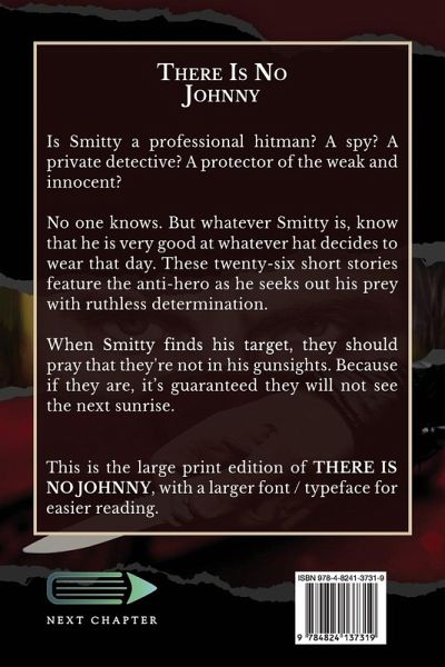 Is Smitty a professional hitman? A spy? A private detective? A protector of the weak and innocent? No one knows. But whatever Smitty is, know that he is very good at whatever hat decides to wear that day. These twenty-six short stories feature the anti-hero as he seeks out his prey with ruthless determination. When Smitty finds his target, they should pray that they're not in his gunsights. Because if they are, it's guaranteed they will not see the next sunrise. This is the large print edition of There Is No Johnny, with a larger font / typeface for easier reading.