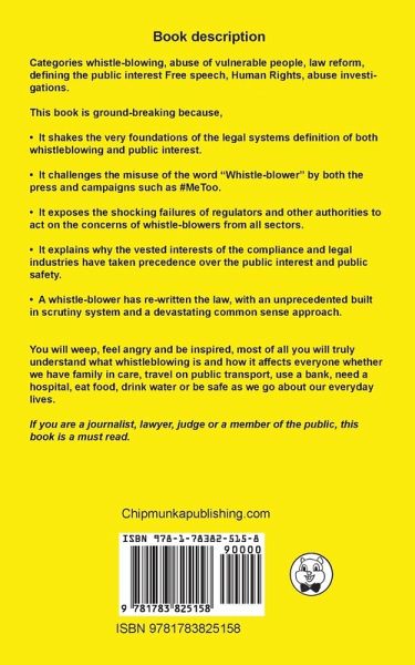 This book is ground-breaking because: ¿ It shakes the very foundations of the legal systems definition of both whistleblowing and public interest. ¿ It exposes the shocking failures of regulators and other authorities to act on the concerns of whistle-blowers from all sectors. ¿ It explains why the vested interests of the compliance and legal industries have taken precedence over the public interest and public safety. ¿ A whistle-blower has re-written the law, with an unprecedented built in scrutiny system and a devastating common sense approach. About the Author Eileen Chubb's experiences have given her a unique combination of an in-depth knowledge of whistleblowing, the law related to it, and the consequences of failing to take action on concerns. From all these she has written Edna's Law to give effective protection to whistleblowers and the public interest. She was one of the "Bupa7", the first case to use the Public Interest Disclosure Act, after which she founded the charity Compassion In Care in 2003 and her helpline has supported over 7000 whistleblowers and over 5000 relatives of victims of silence. In 2014 she co-founded The Whistler with the investigative journalist Gavin MacFadyen in response to the increasing number of non-care whistleblowers requesting support. Eileen works closely with the media to expose abuse in care settings and also the responses of the Care Quality Commission and safeguarding authorities. She has been undercover in over 300 UK care homes. Her work with BBC Panorama "Behind Closed Doors: Elderly Care Exposed" led to 3 abusers being jailed, and she has carried out joint investigations with Heather Mills of Private Eye into how the Care Quality Commission and care home owners mislead the public. Her report CQC An Ongoing Concern exposed the care home re-registration scam. Eileen's submission to the Law Commission consultation on Misconduct In Public Office is Should We Abolish Accountability?, and in Reality (CCTV) Check she sets out the evidence that CCTV in care homes does not improve care. The book "Beyond The Facade" is Eileen's moving account of the Bupa7 case. She has contributed to the books "Here We Stand", "Shadow State", and "Forever Young", and "Hazards" Magazine, and is a frequent contributor to the media on care homes and whistleblowing law in all sectors. In 2017 Eileen founded the Gavin MacFadyen Award to celebrate journalists who help whistleblowers to expose facts.
