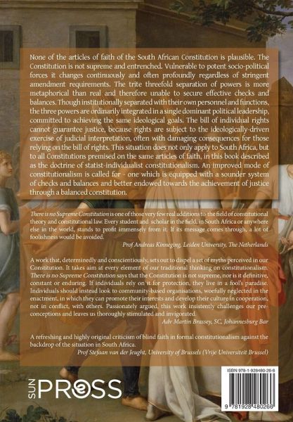 None of the articles of faith of the South African Constitution is plausible. The Constitution is not supreme and entrenched. Vulnerable to potent socio-political forces it changes continuously and often profoundly regardless of stringent amendment requirements. The trite threefold separation of powers is more metaphorical than real and therefore unable to secure effective checks and balances. Though institutionally separated with their own personnel and functions, the three powers are ordinarily integrated in a single dominant political leadership, committed to achieving the same ideological goals. The bill of individual rights cannot guarantee justice, because rights are subject to the ideologically-driven exercise of judicial interpretation, often with damaging consequences for those relying on the bill of rights. This situation does not only apply to South Africa, but to all Constitutions premised on the same articles of faith, in this book described as the doctrine of statist-individualist constitutionalism. An improved mode of constitutionalism is called for - one which is equipped with a sounder system of checks and balances and better endowed towards the achievement of justice through a balanced constitution.