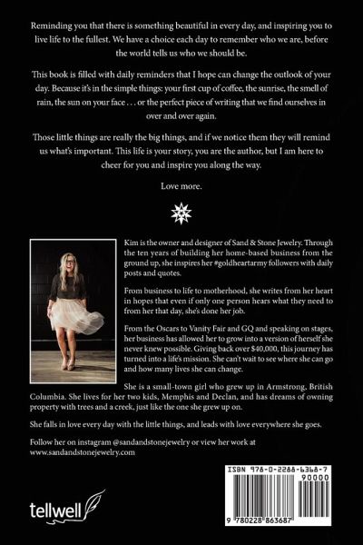 Reminding you that there is something beautiful in every day, and inspiring you to live life to the fullest. We have a choice each day to remember who we are, before the world tells us who we should be. This book is filled with daily reminders that I hope can change the outlook of your day. Because it's in the simple things: your first cup of coffee, the sunrise, the smell of rain, the sun on your face . . . or the perfect piece of writing that we find ourselves in over and over again. Those little things are really the big things, and if we notice them they will remind us what's important. This life is your story, you are the author, but I am here to cheer for you and inspire you along the way. Love more.