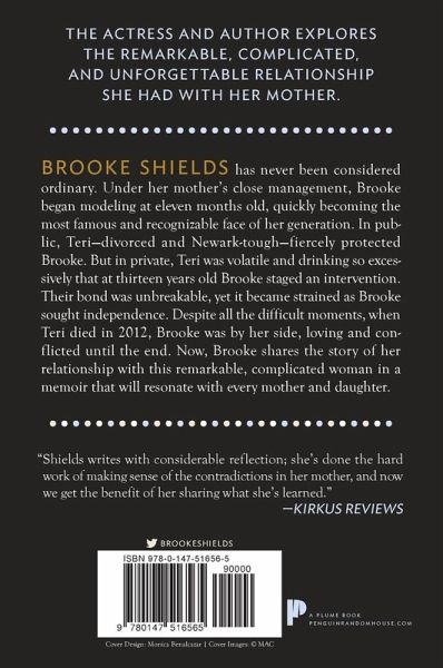 A brutally frank recollection of Shields' career path, romances, marriages and entry into motherhood, but the basic thesis of the book is a deep examination of her intense relationship with her own mother, Teri Schmon Shields a woman who molded Brooke's life, both personal and professional, for decades. Chicago Sun-Times