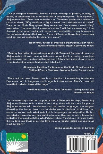 ALEJANDRO JIMENEZ is a formerly-undocumented immigrant, poet, writer, and educator from Colima, México, living in New Mexico. He is the 2021 Mexican National Poetry Slam Champion, a two-time National Poetry Slam Semi-Finalist (US), multiple time TEDx Speaker/Performer, and regional Emmy-nominated poet. In 2022, he was featured in TIME Magazine as one of 80 Mexican artists shaping contemporary Mexican culture. His work centers and touches on cultural identity, immigrant narratives, masculinity, memory, and the intersections of them all. He is a TIN HOUSE Writers Workshop participant. His work has appeared in The Acentos Review, The Latino Book Review, Yellowscene, As/Us Journal, Rethinking Schools, and other publications. He has also been featured in Radar2021, Telemundo, NBCUniversal and Tracksmith. His self-published book, Moreno.Prieto. Brown. (2017), has sold over 3,000 copies and has been incorporated in curricula across various school districts.