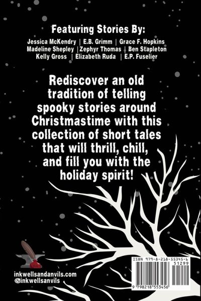 Christmas is a time for gathering the family back together, wishing each other "Happy Holidays" or "Merry Christmas", peace on Earth, and good will to Men. Its the time for great joy, yes. But why is it the time for great celebrations? By all matters for the northern hemisphere, its the darkest and coldest time of the year. So why all the festive cheer? Well, there certainly is a good reason to celebrate all those good things on December 25th itself, but there's one old storied tradition of the yuletide that makes a little more sense. Christmas ghost stories. Inside the covers of this book you'll find nine tales to terrorize, spook, and chill your blood. But as with any good horror, there's also a single pinprick of light. A hope you can reach your hand towards on the darkest day of the year. Nine tales to terrify, and nine tales to reflect. Nine tales to bring hope, and nine tales to turn your back on despair. From a spectral examination to a cowboy's Christmas prank to terrible presents that just seem to be regifted over and over there's something here for everyone. So fear not the dark, pull up a chair by the fire, and we'll see our way through these shadowy days and bright nights. Because after all, There'll Be Scary Ghost Stories! Featuring stories by:Jessica McKendry E.B. Grimm Grace F. Hopkins Madeline Shepley Zephyr Thomas Ben Stapleton Kelly Gross E.P. Fuselier [Cover designer] Elizabeth Ruda with a forward by Inkwells & Anvils' Discord Master - Catherine Stewart