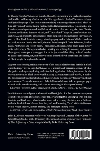 In There's a Disco Ball Between Us, Jafari S. Allen offers a sweeping and lively ethnographic and intellectual history of what he calls "Black gay habits of mind." In conversational and lyrical language, Allen locates this sensibility as it emerged from radical Black lesbian activism and writing during the long 1980s. He traverses multiple temporalities and locations, drawing on research and fieldwork conducted across the globe, from Nairobi, London, and Paris to Toronto, Miami, and Trinidad and Tobago. In these locations and archives, Allen traces the genealogies of Black gay politics and cultures in the visual art, poetry, film, Black feminist theory, historiography, and activism of thinkers and artists such as Audre Lorde, Marsha P. Johnson, Essex Hemphill, Colin Robinson, Marlon Riggs, Pat Parker, and Joseph Beam. Throughout, Allen renarrates Black queer history while cultivating a Black gay method of thinking and writing. In so doing, he speaks to the urgent contemporary struggles for social justice while calling on Black studies to pursue scholarship, art, and policy derived from the lived experience and fantasies of Black people throughout the world.