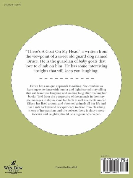 "There's A Goat On My Head" is written from the viewpoint of a sweet old guard dog named Bruce. He is the guardian of baby goats that love to climb on him. He has some interesting insights that will keep you laughing.