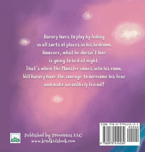 A playful little creature named Harvey, loves to play and hide in all sorts of places in his bedroom. However, what he doesn't love is going to bed at night. That's when the Monster comes into his room. Through curiosity and courage, he finds himself face to face with the monster. Will he hide or will he make a new unlikely friend? But wait, there's more! On each double page you will find a little creature that assumingly made his home in Harvey's room - will your little one(s) find him?