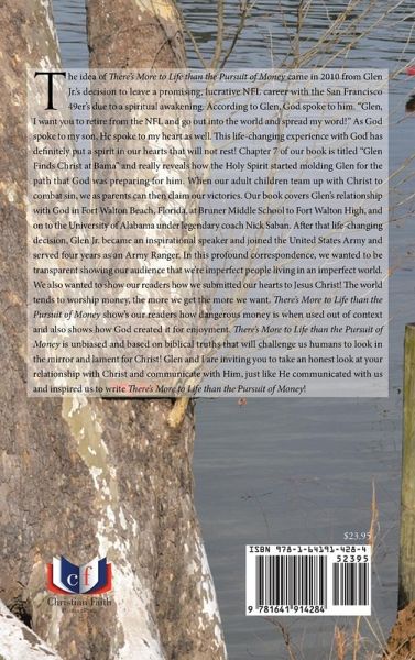 The idea of There's More to Life than the Pursuit of Money came in 2010 from Glen Jr.'s decision to leave a promising, lucrative NFL career with the San Francisco 49er's due to a spiritual awakening. According to Glen, God spoke to him. "Glen, I want you to retire from the NFL and go out into the world and spread my word!" As God spoke to my son, He spoke to my heart as well. This life-changing experience with God has definitely put a spirit in our hearts that will not rest! Chapter 7 of our book is titled "Glen Finds Christ at Bama" and really reveals how the Holy Spirit started molding Glen for the path that God was preparing for him. When our adult children team up with Christ to combat sin, we as parents can then claim our victories. Our book covers Glen's relationship with God in Fort Walton Beach, Florida, at Bruner Middle School to Fort Walton High, and on to the University of Alabama under legendary coach Nick Saban. After that life-changing decision, Glen Jr. became an inspirational speaker and joined the Untied Stated Army and served four years as an Army Ranger. In this profound correspondence, we wanted to be transparent showing our audience that we're imperfect people living in an imperfect world. We also wanted to show our readers how we submitted our hearts to Jesus Christ! The world tends to worship money, the more we get the more we want. There's More to Life than the Pursuit of Money show's our readers how dangerous money is when used out of context and also shows how God created it for enjoyment. There's More to Life than the Pursuit of Money is unbiased and based on biblical truths that will challenge us humans to look in the mirror and lament for Christ! Glen and I are inviting you to take an honest look at your relationship with Christ and communicate with Him, just like He communicated with us and inspired us to write There's More to Life than the Pursuit of Money!
