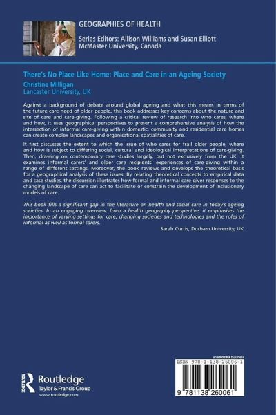 Against a background of debate around global ageing and what this means in terms of the future care need of older people, this book addresses key concerns about the nature and site of care and care-giving. Following a critical review of research into who cares, where and how, it uses geographical perspectives to present a comprehensive analysis of how the intersection of informal care-giving within domestic, community and residential care homes can create complex landscapes and organizational spatialities of care. Drawing on contemporary case studies largely, but not exclusively from the UK, the book reviews and develops a theoretical basis for a geographical analysis of the issue of care. By relating these theoretical concepts to empirical data and case studies it illustrates how formal and informal care-giver responses to the changing landscape of care can act to facilitate or constrain the development of inclusionary models of care.