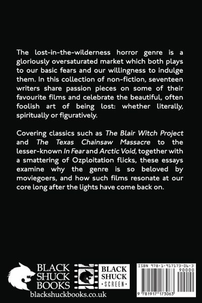 The lost-in-the-wilderness horror genre is a gloriously oversaturated market which both plays to our basic fears and our willingness to indulge them. In this collection of non-fiction, seventeen writers share passion pieces on some of their favourite films and celebrate the beautiful, often foolish art of being lost: whether literally, spiritually or figuratively. Covering classics such as The Blair Witch Project and The Texas Chainsaw Massacre to the lesser-known In Fear and Arctic Void, together with a smattering of Ozploitation flicks, these essays examine why the genre is so beloved by moviegoers, and how such films resonate at our core long after the lights have come back on.