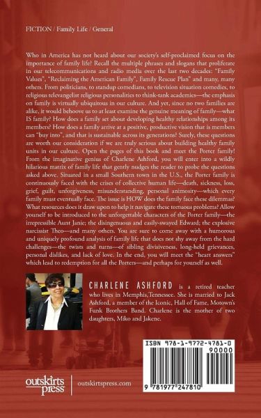 In recent decades the themes of family love, understanding and unity have been at the forefront in our society. From the music of Sly and the Family Stone ("Family Affair"), and the O' Jays ("Family Reunion"); To the popular cinema juggernauts of "Cheaper By the Dozen", "Johnson Family Reunion", "life with father", "Home Alone", and the wildly popular "Madea's Family Reunion "; To American politicians' favorite mantra of "Family Values" ---- the focus on family dynamics and family relational health has remained a permanent feature of our culture. And yet, despite its importance, the notion of "family" is still perhaps one of the least understood and most threatened facets of contemporary society. Charlene Ashford's scintillating account of the Porter family will warm the heart and delight the imagination while providing brilliant insights into the meaning of family. Readers will meet the unforgettable characters of the Porter Family: the grand matriarch - the glue that holds the family together; the quick-tempered Aunt, the wise cracking quip-a-minute brother, the brooding and tempestuous sister, the envy-bitten sister; the volatile, "doesn't-have-a-clue" brother; the always available, understanding, and affable undertaker. Prepare to experience laughter, heartbreak, heartache, disappointment, sadness, anxiety, and the tenacity of hope as the Porter family faces internal challenges of divisiveness, misunderstandings, relational strife, health deterioration, and death. Witness the attempts of flawed human beings to navigate the unpredictable moments of the human condition as they revel in their limited capacity to manage serendipity. Follow the Porter family Heroine who, despite her feet of clay, tries desperately to keep the fragmented family on the path of unity. In the end, the reader is certain to adopt an empathic stand in favor of the Porter family's efforts to successfully pull it all together. Will the Porter family be able to garner the therapeutic and healing resources that will enable them to arrive at a place of love, forgiveness, reconciliation, and redemption? Nobel Laureate Toni Morrison mastered the unique skill of bending language to her will so that the reader was mesmerized and helplessly pulled into the drama of the narrative. Charlene Ashford has proven equally adept at coaxing language out of its chair and onto the dance floor. Once there, she frees language to initiate the dance of liberation -- to twirl, twist, leap, roll, and bounce from the page to the eye to the heart to the soul with dexterity and humor. Ashford's narrative achieves its aim -- to promote a story of family redemption, where individual self-discovery and communal restoration become possibilities for all those who desire it deep enough and strong enough to pursue it