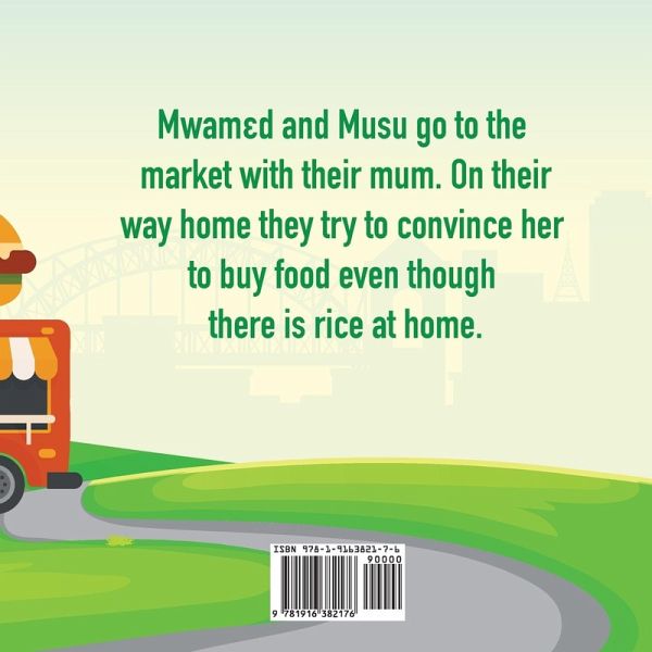 Mwamed and Musu go to the market with their mum to buy groceries for their house. On their way home they pass by different food stalls and ask their mum if they're allowed to have something to eat even though there is rice at home. If you've ever been told those words, you'll love this fun, original, children's story for your children. It has been translated into Krio (the lingua franca of Sierra Leone) by The Young Sierra Leonean initiative @Young_Salone and contains a mini glossary at the end. Suitable for any age trying to learn and practice Krio.