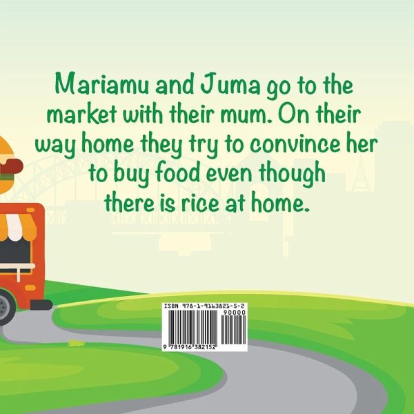 Mariamu and Juma go to the market with their mum to buy groceries for their house. On their way home they pass by different food stalls and ask their mum if they're allowed to have something to eat even though there is rice at home. This fun, original, children's story is dedicated to everyone who has ever been told the phrase "There's Rice At Home". Also contains a mini swahili glossary.