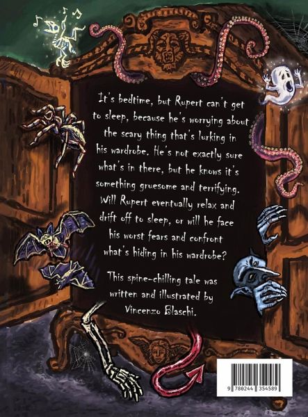 It's Rupert's bedtime, but he can't get to sleep because he's thinking about the thing in his wardrobe. He doesn't know what it is, but he knows it's scary. Can Rupert eventually fall asleep, or will he confront what's lurking in his wardrobe? This is a beautifully illustrated children's book about irrational and unfounded fears. It is quirky and off the wall, full of horrors but ultimately a very humorous tale. An ideal Halloween gift! Please note, this book may be too scary for some children.