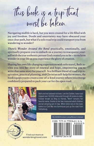 "Beth empowers readers to boldly embrace their own adventures and create space for the ultimate rewards: the joy and wonder at the heart of life's journeys." - Angela Heisten, co-author of Wonder Year This soul-stirring travel adventure will inspire you to trade the comfort of your couch for the joy and freedom of the open road-on your own. There's Wonder Around the Bend is the guide every aspiring solo traveler needs. Far more than a checklist or how-to guide, this inspired travel companion empowers you to create a personal, transformational solo journey. Including captivating stories from over 60,000 miles of solo road trips, Beth equips you to seek wonder while providing the essential practical steps to guide you every mile of the way. Her charming prose is infused with Christian travel inspiration, leaving the reader with warm feelings reminiscent of sharing an afternoon with a trusted friend. Encounter joy and practical help as Beth inspires you to:Navigate your first solo trip with confidence. Create a just-for-you adventure with her "Treasure Map" system. Plan with purpose using her 6 exclusive "Pillars of Planning." Build confidence and overcome fear with solo travel safety tips. There's Wonder Around the Bend blends practical advice with heartfelt and spiritual reflections, offering a clear roadmap to renewal and hope for every traveler. Start your journey today! Grab your copy of There's Wonder Around the Bend and discover the joy, freedom, and renewal waiting for you on the open road.