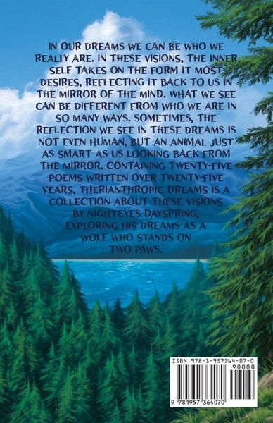 In our dreams we can be who we really are. In these visions, the inner self takes on the form it most desires, reflecting it back to us in the mirror of the mind. What we see can be different from who we are in so many ways. Sometimes, the reflection we see in these dreams is not even human, but an animal just as smart as us looking back from the mirror. Containing twenty-five poems written over twenty-five years, Therianthropic Dreams is a collection about these visions by NightEyes DaySpring, exploring his dreams as a wolf who stands on two paws.