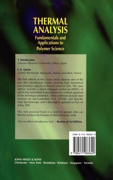 Das erfolgreiche Handbuch der Thermoanalyse jetzt in neuer, aktualisierter Auflage! Die Literaturliste wurde überarbeitet, und ein neu aufgenommenes Kapitel zur MDSC trägt der gestiegenen Bedeutung dieser Methode Rechnung. Der Band ergänzt das "Handbook of Thermal Analysis" vom gleichen Autor, welches Angaben zur Gerätetechnik, zu experimentellen Bedingungen und Datensammlungen enthält. (04/99)