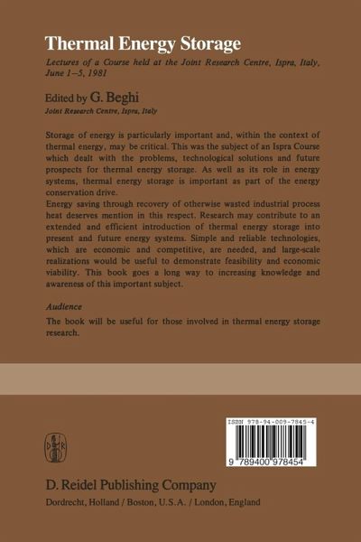 Energy Storage and the Energy Systems.- Sensible Heat Storage.- Low Temperature Latent Heat Thermal Energy Storage.- Chemical Heat Pipes (Reversible Chemical Reactions at Medium/High Temperature).- Hydrogen Production and Storage.- Storage in the Ground.- Short and Long-Term Thermal Storage in Solar Ponds.- Thermal Energy Storage in Community Systems.- Thermal Energy Storage for the Recovery of Industrial Waste Heat.- Thermal Energy Storage for Peaking Power Generation.- Transmission of Heat Using Hot Water Pipes Part I.- Transmission of Heat Using Hot Water Pipes Part II.- Metal Hydrides for Heat Storage of Combustion and Reaction Processes.- Heat Pumps Combined with Thermal Storage.- Solar Heat Storage: Comparisons and Goals.- Overview of the Thermal Storage Work within the Energy R and D Programme of the European Community.- United States Department of Energy Thermal Energy Storage Program.