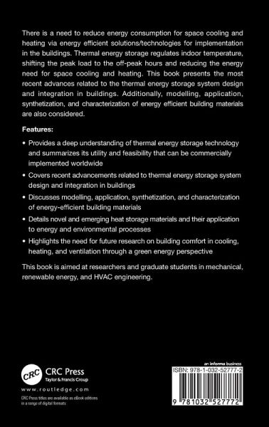 Features: Provides a deep understanding of thermal energy storage technology and summarizes its utility and feasibility that can be commercially implemented worldwideCovers recent advancements related to thermal energy storage system design and integration in buildingsDiscusses modelling, application, synthetization, and characterization of energy-efficient building materialsDetails novel and emergingheat storage materials and their application to energy and environmental processesHighlights the need for future research on building comfort in cooling, heating, and ventilation through a green energy perspective This book is aimed at researchers and graduate students in mechanical, renewable energy, and HVAC engineering.