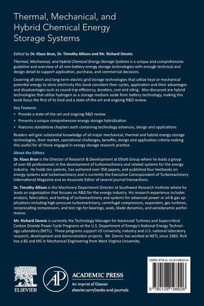 Thermal, Mechanical, and Hybrid Chemical Energy Storage Systems provides unique and comprehensive guidelines on all non-battery energy storage technologies, including their technical and design details, applications, and how to make decisions and purchase them for commercial use. The book covers all short and long-term electric grid storage technologies that utilize heat or mechanical potential energy to store electricity, including their cycles, application, advantages and disadvantages, such as round-trip-efficiency, duration, cost and siting. Also discussed are hybrid technologies that utilize hydrogen as a storage medium aside from battery technology.