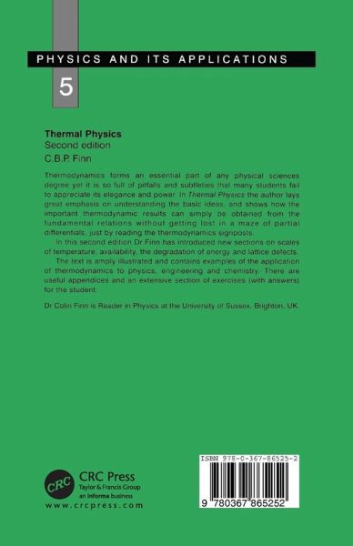 Concise yet thorough, accessible, authoritative, and affordable. These are the hallmarks of books in the remarkable Physics and its Applications series. Thermodynamics is an essential part of any physical sciences education, but it is so full of pitfalls and subtleties, that many students fail to appreciate its elegance and power. In Thermal Physics, the author emphasizes understanding the basic ideas and shows how the important thermodynamics results can be simply obtained from the fundamental relations without getting lost in a maze of partial differentials. In this second edition, the author incorporated new sections on scales of temperature, availability, the degradation of energy, and lattice defects. The text contains ample illustrations and examples of applications of thermodynamics in physics, engineering, and chemistry.