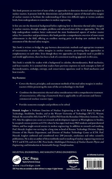 Covers the theory, principles, and assessment methods of thermal safety margins in nuclear reactors whilst presenting the state-of-the-art technology in the fieldCombines the deterministic thermal safety considerations with a comprehensive treatment of uncertainties, offering a framework that is applicable to all current and future commercial nuclear reactor typesProvides numerous examples and problems to be solved