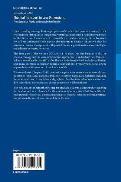The first part of thevolume (Chapters 1-6) describes the basic models, the phenomenology and thevarious theoretical approaches to understand heat transport in low-dimensionallattices (1D e 2D). The methods described will include equilibrium and nonequilibriummolecular dynamics simulations, hydrodynamic and kinetic approaches and thesolution of stochastic models.