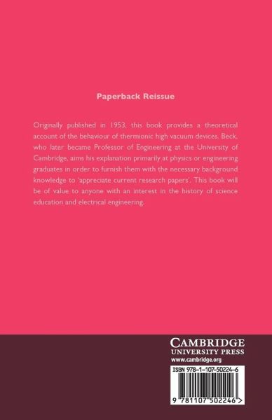 Originally published in 1953, this book provides a theoretical account of the behaviour of thermionic high vacuum devices. Beck, who later became Professor of Engineering at the University of Cambridge, aims his explanation primarily at physics or engineering graduates in order to furnish them with the necessary background knowledge to 'appreciate current research papers'. This book will be of value to anyone with an interest in the history of science education and electrical engineering.
