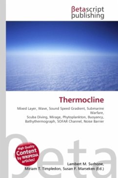 High Quality Content by WIKIPEDIA articles! A thermocline (sometimes metalimnion) is a thin but distinct layer in a large body of fluid (e.g. water, such as an ocean or lake, or air, such as an atmosphere), in which temperature changes more rapidly with depth than it does in the layers above or below. In the ocean, the thermocline may be thought of as an invisible blanket which separates the upper mixed layer from the calm deep water below. Depending largely on season, latitude and turbulent mixing by wind, thermoclines may be a semi-permanent feature of the body of water in which they occur, or they may form temporarily in response to phenomena such as the radiative heating/cooling of surface water during the day/night. Factors that affect the depth and thickness of a thermocline include seasonal weather variations, latitude, and local environmental conditions, such as tides and currents.