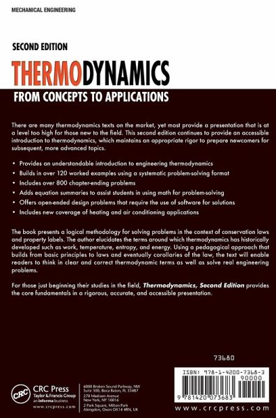 Most thermodynamics texts on the market present material that is too sophisticated for newcomers to the field. This second edition of Thermodynamics continues to provide an accessible introduction to thermodynamics, which maintains an appropriate rigor to prepare newcomers for subsequent, more advanced topics. The book presents a logical methodology for solving problems in the context of conservation laws and property tables or equations. For those just beginning their studies in the field, Thermodynamics, Second Edition provides the core fundamentals in a rigorous, accurate, and accessible presentation.