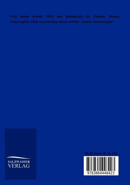 Fritz Haber erhielt 1919 den Nobelpreis für Chemie. Dieses ursprünglich 1905 erschienene Werk enthält "sieben Vorlesungen".