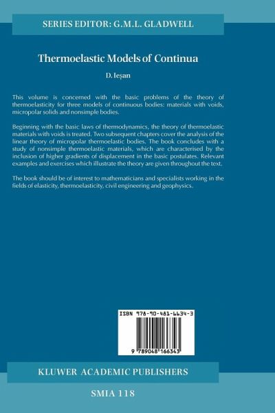 From the reviews: "The present monograph of lesan is a valuable contribution to the mathematical foundation of the theory of thermoelasticity of continuous bodies. ... his goal is 'to present a unified and systematic treatment of some results established in the theory of generalized models of thermoelastic bodies', and in my opinion he reaches this aim in a very good manner ... . The book can be a helpful tool not only for pure and applied mathematicians but also for physicists as well as for engineers ... ." (M. Fuchs, ZAMM - Zeitschrift für Angewandte Mathematik und Mechanik, Vol. 86 (11), 2006) "The book is complementary to the well-known monographs on the non-classical theories of thermoelasticity ... . And it is written by one of the experts in the field, who has contributed to the development of the classical dynamic thermoelasticity and its extensions immensely. ... On the whole this is a valuable monograph in the field of solid mechanics that should prove useful to a wide range of researchers for many years to come." (J. Ignaczak, Mathematical Reviews, Issue 2006 e)