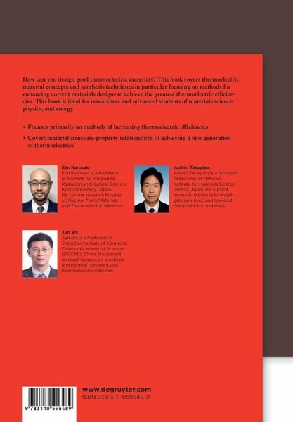 How can you design good thermoelectric materials? This book covers thermoelectric material concepts and synthesis techniques in particular focusing methods for enhancing current materials designs to achieve the greatest thermoelectric efficiencies. This book is ideal for researchers and advanced students of materials science, physics, and energy.