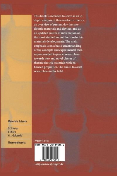 Thermoelectrics is becoming more and more important for technical applications such as refrigeration. The book will become the standard one in this field. It appeals to engineers, researchers and advanced students.